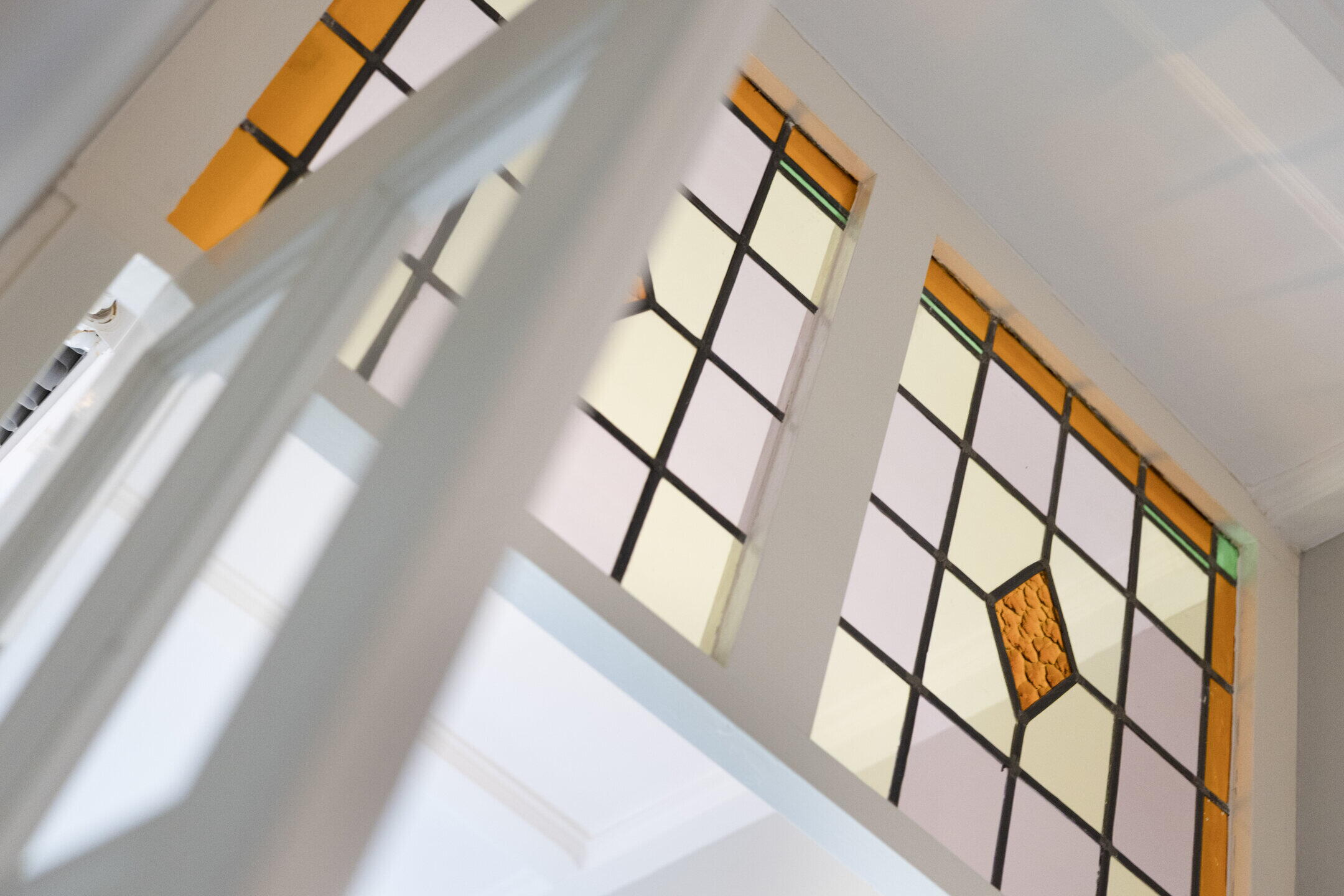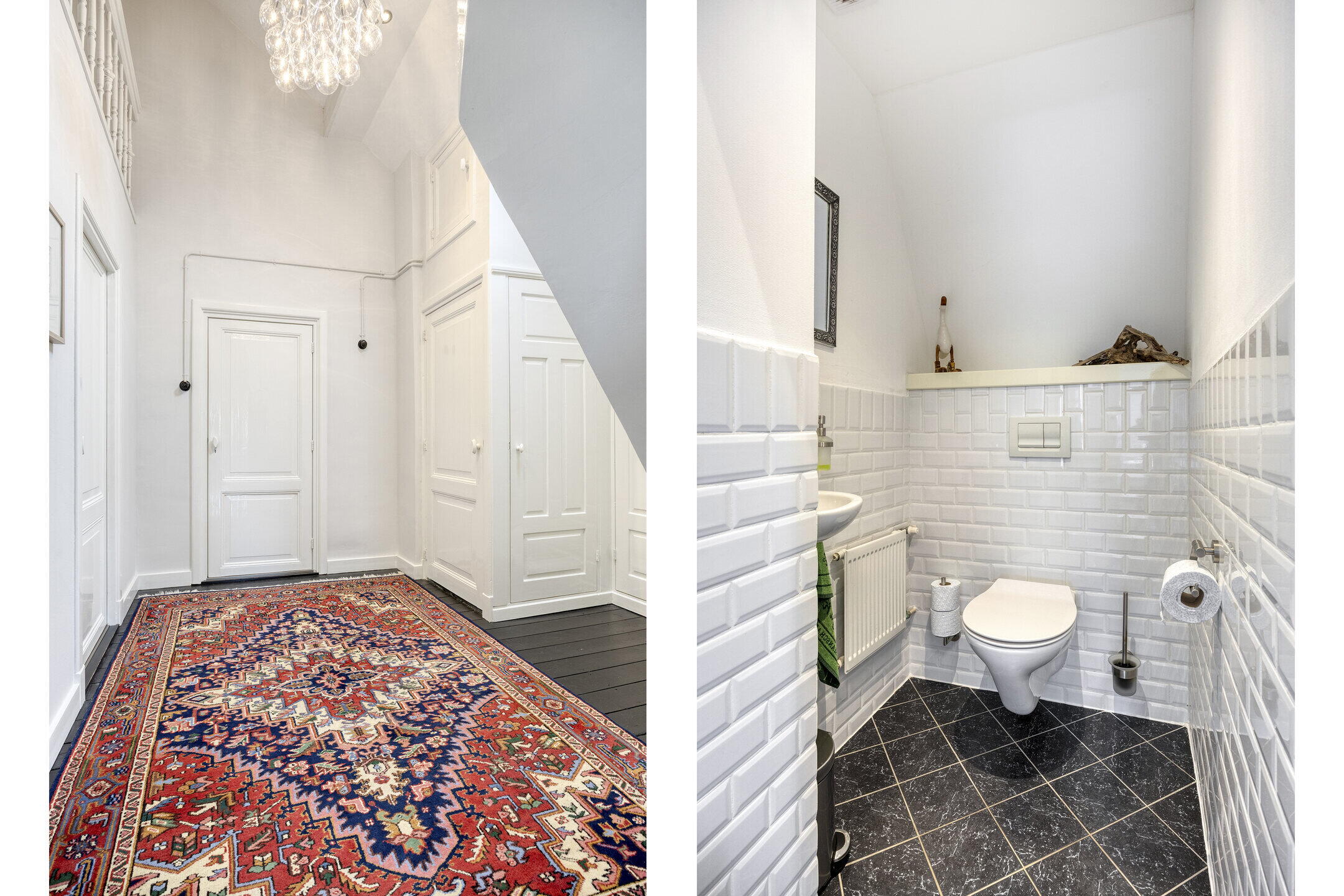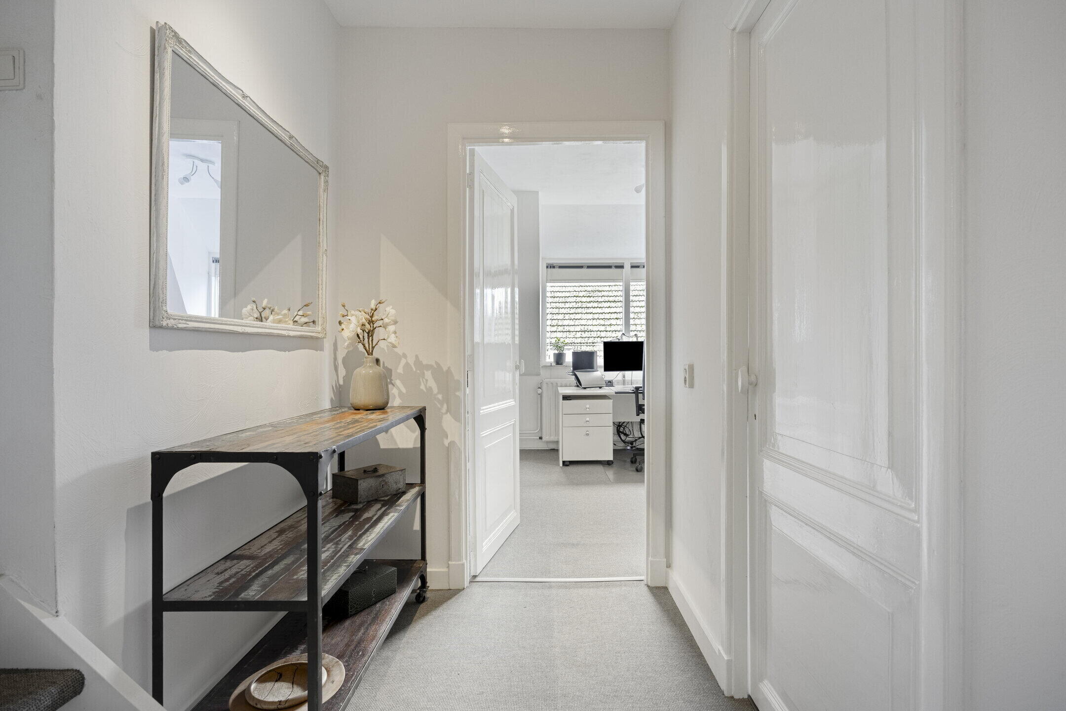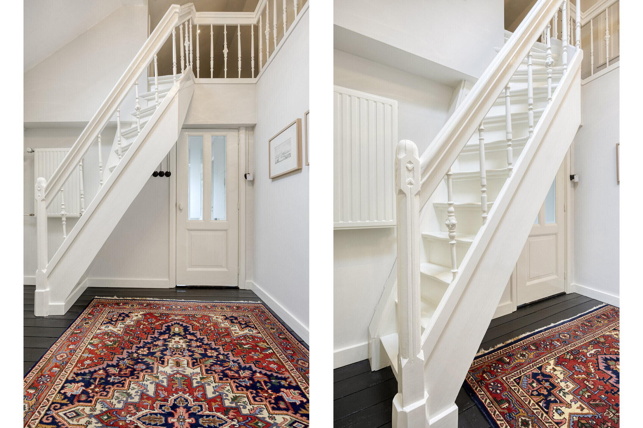 Via de entree komt u in de sfeervolle hal met de karakteristieke granieten terrazzovloer en authentieke details die direct de sfeer van deze jaren ’30 woning benadrukken. Vanuit de hal zijn de verschillende leefruimtes bereikbaar.