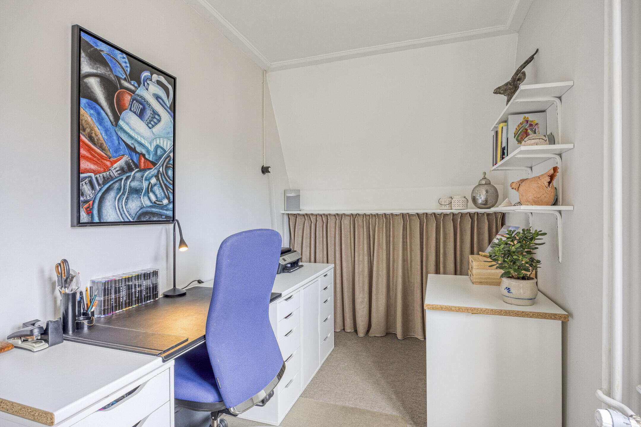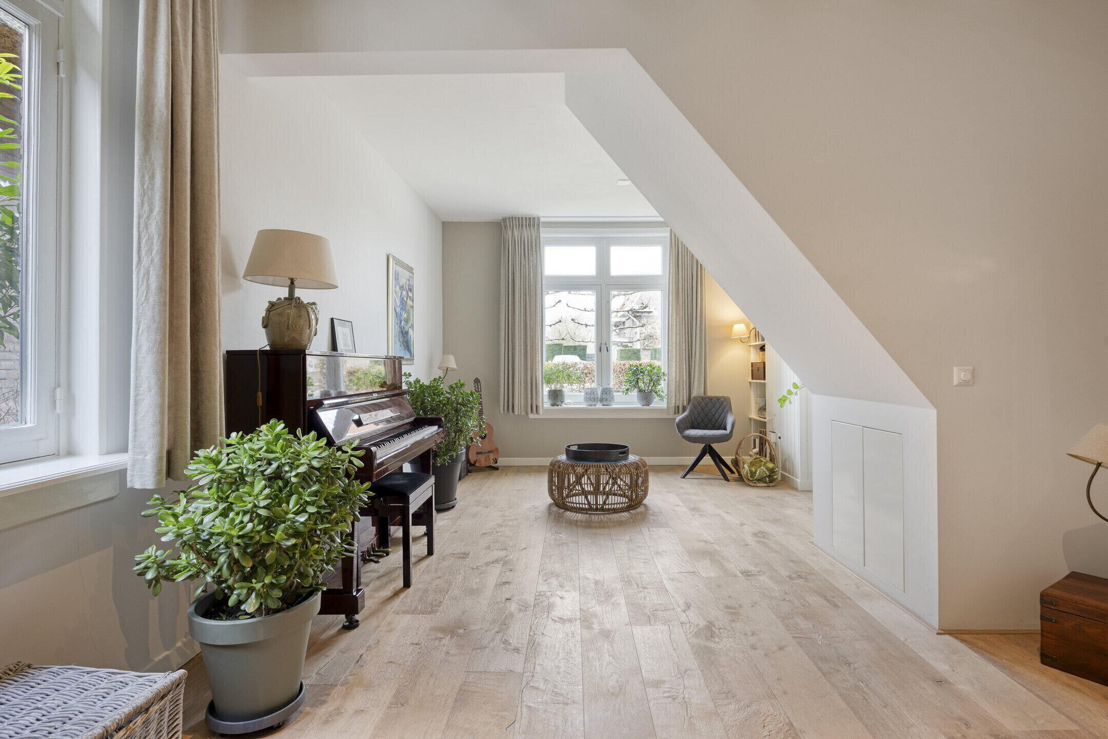Naast de woonkamer bevindt zich een tweede leefruimte die momenteel als muziekkamer wordt gebruikt. Deze ruimte is multifunctioneel en kan ook uitstekend dienen als speelkamer, werkruimte of slaapkamer op de begane grond. Tijdens de renovatie in 2020 is hier bovendien een warm- en koudwateraansluiting met afvoer aangebracht, waardoor deze ruimte eenvoudig kan worden aangepast voor levensloopbestendig wonen.