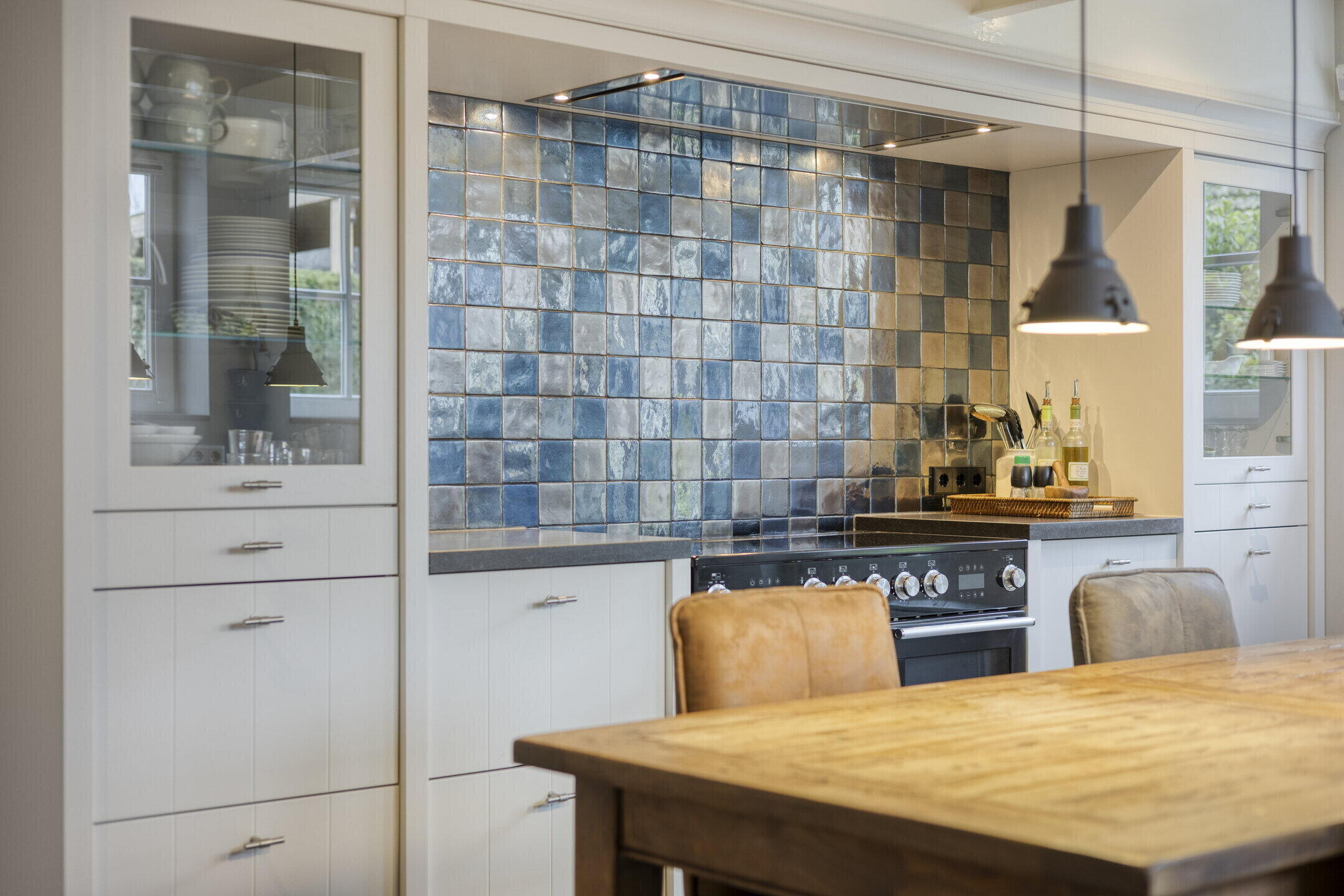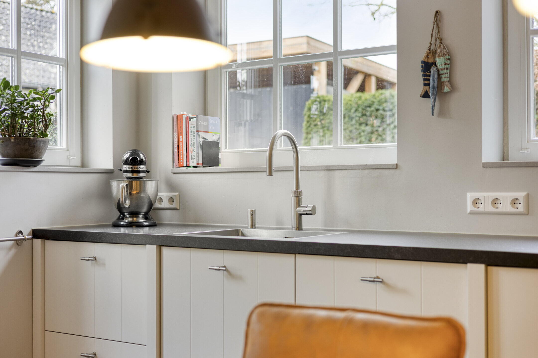 Aan de achterzijde van de woning bevindt zich de ruime leefkeuken, een heerlijke plek waar koken en samenzijn centraal staan. De stijlvolle keuken uit 2020 is uitgerust met diverse inbouwapparatuur waaronder een Quooker en uitgebreid inductiefornuis met meerdere ovens, waaronder een stoomoven. Er is bovendien volop werk- en opbergruimte.