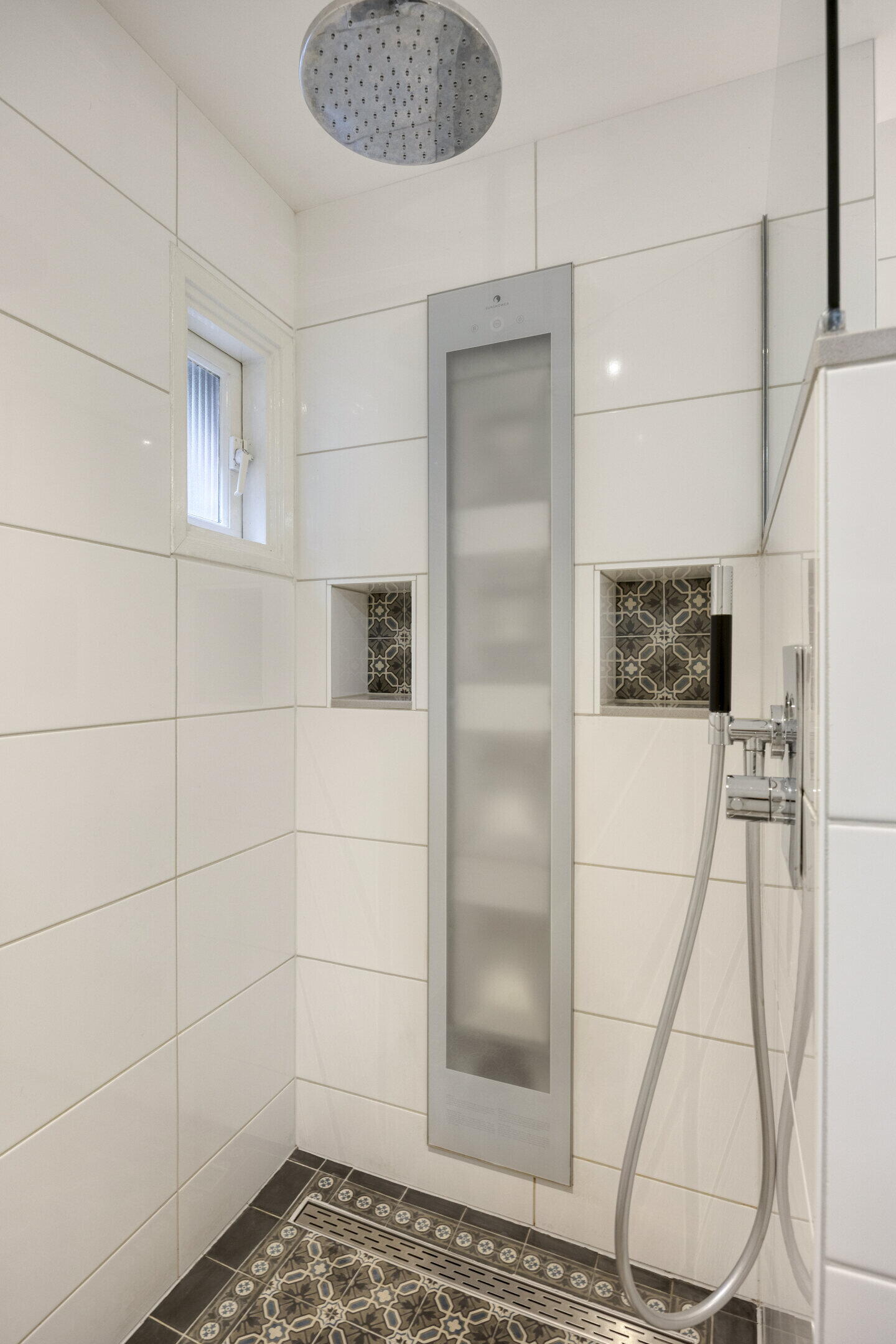 Op de begane grond bevindt zich een ruime luxe badkamer uit 2020 die volledig is uitgerust voor comfort en ontspanning. Hier vindt u onder andere: