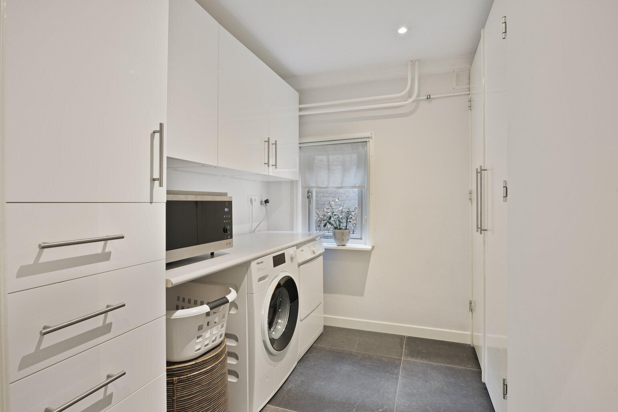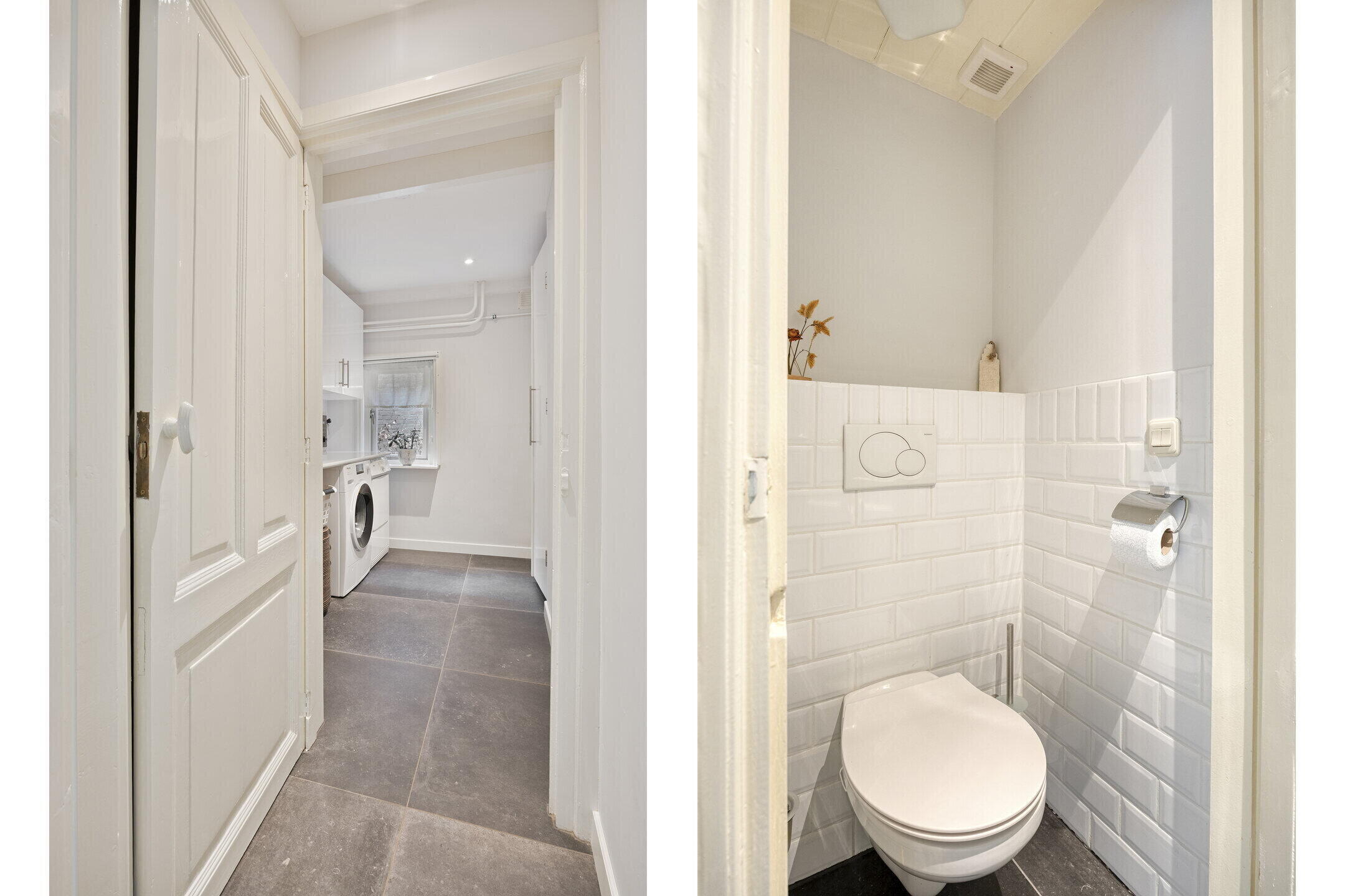 Aansluitend bevindt zich de bijkeuken met extra bergruimte en aansluitingen voor het witgoed. Ook is hier het extra gastentoilet.