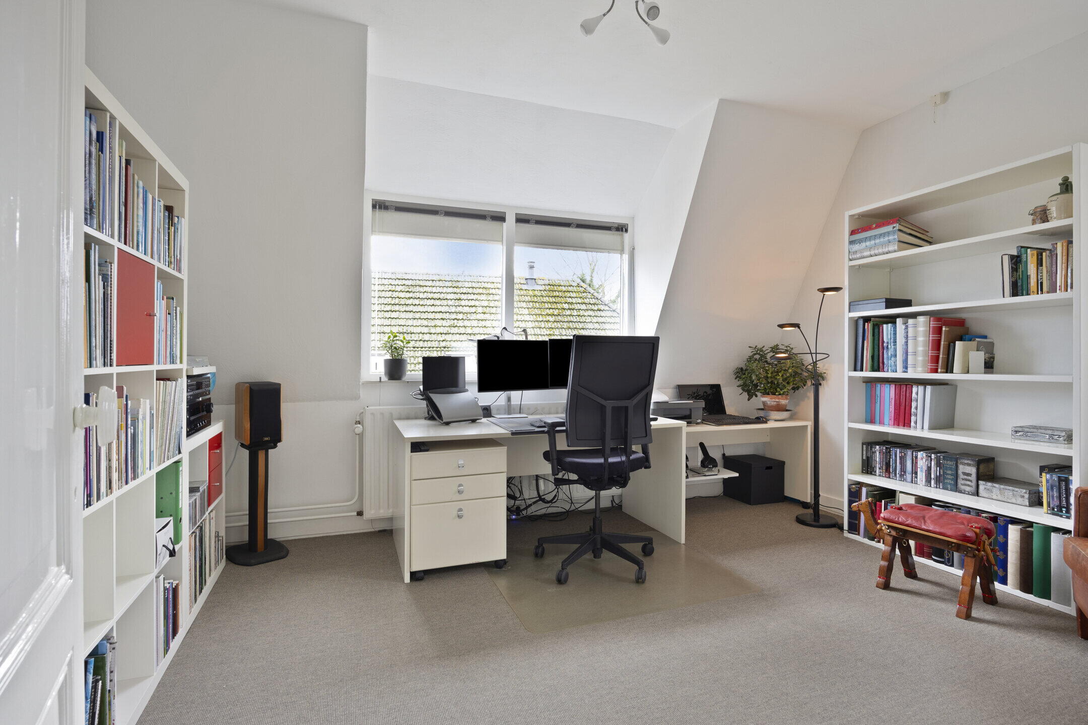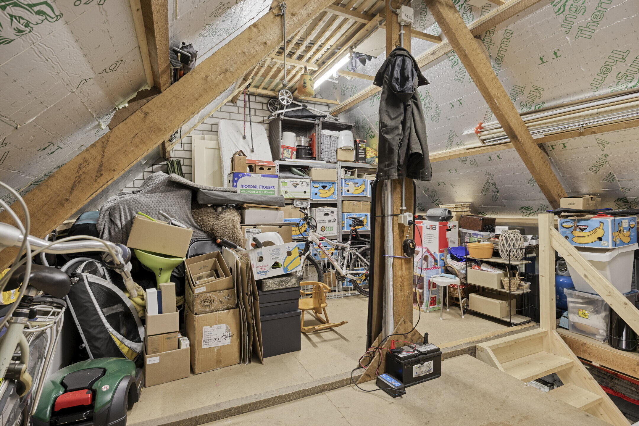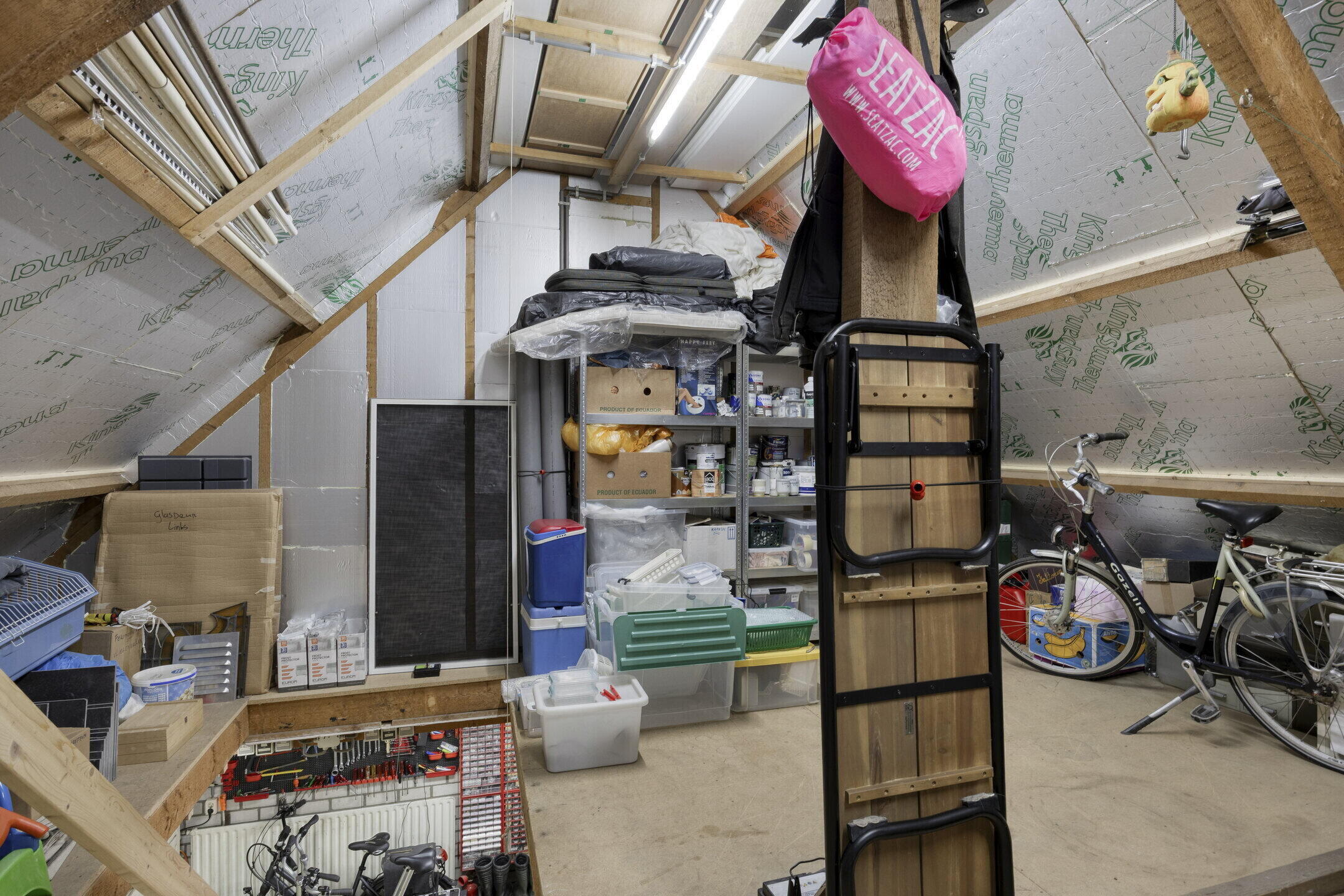 Via een vaste trap is de zolderverdieping bereikbaar, die ook als bijvoorbeeld logeerkamer gebruikt kan worden.