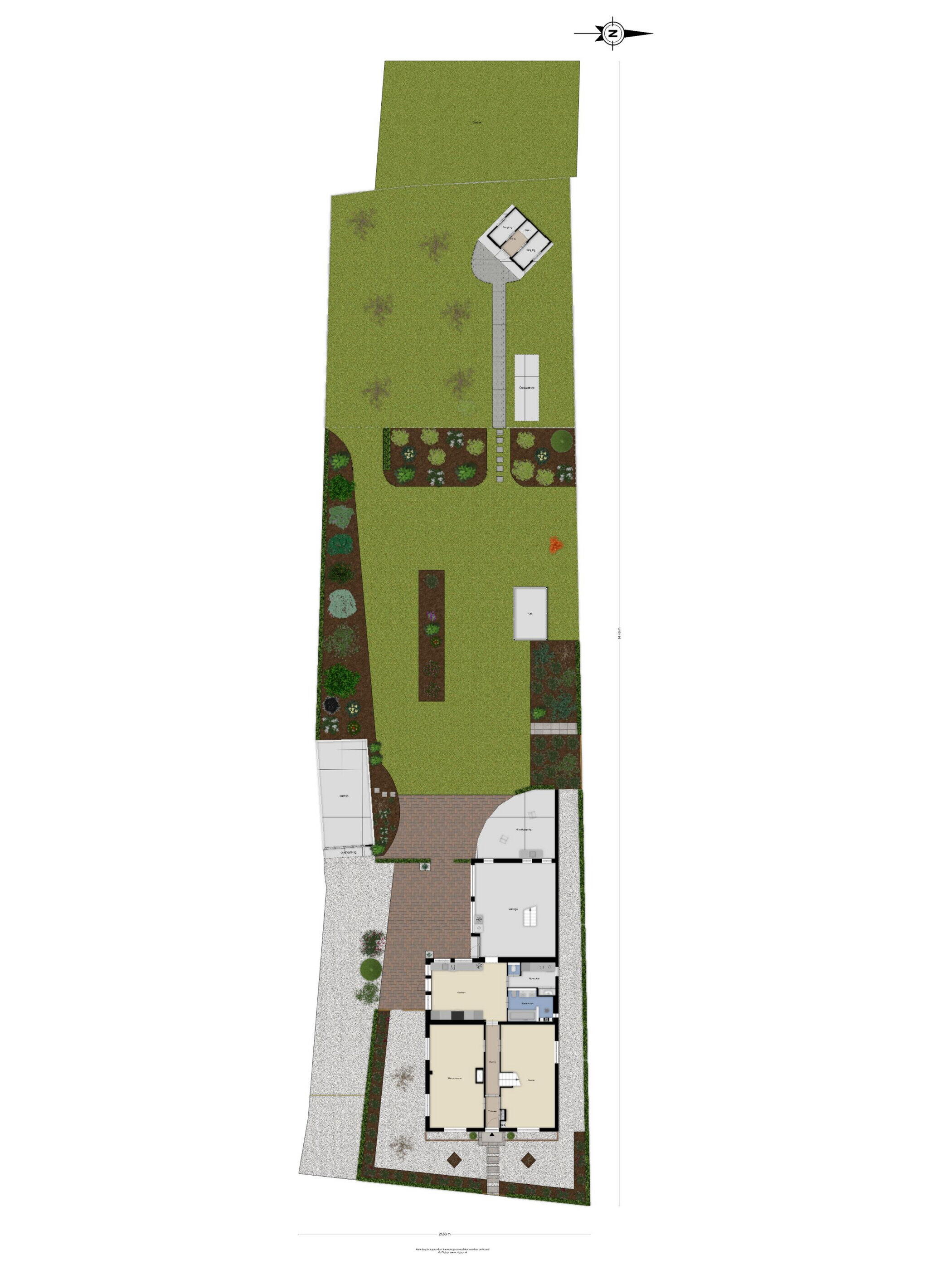 Het perceel van 1.526 m² biedt een prachtige combinatie van tuin, praktische voorzieningen en gezellige buitenruimtes.